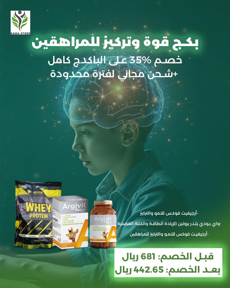 لأن مرحلة المراهقة هي أساس التكوين الجسدي والذهني… وفرنا لك بكج متكامل يجمع بين الطاقة، النمو، والتركيز في آنٍ واحد 💪⚡