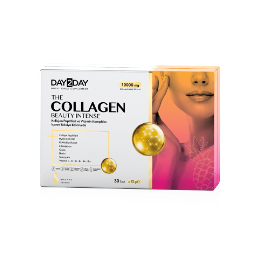 دلّلي جمالك من الداخل مع كولاجين بيوتي إنتنس بنكهة الفراولة من Day2Day، تركيبة متطورة تدعم شباب البشرة، صحة الشعر والأظافر، و تمنحك إشراقة طبيعية تدوم. بطعم الفراولة اللذيذ وسهولة الاستخدام، يصبح روتين العناية اليومية أكثر متعة وفعالية.